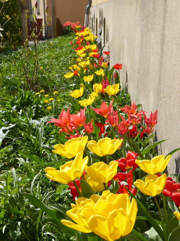 Ist aber nicht zum Lachen wenn sie's machen. :( Besonders fies, wenn die Tulpen zuerst normal austreiben und dann plötzlich... :-\ Und so ist denn mein Süden wieder, wie er vor drei Jahren mal war, ein `Orange Emperor` von den Gartenvorgängern.