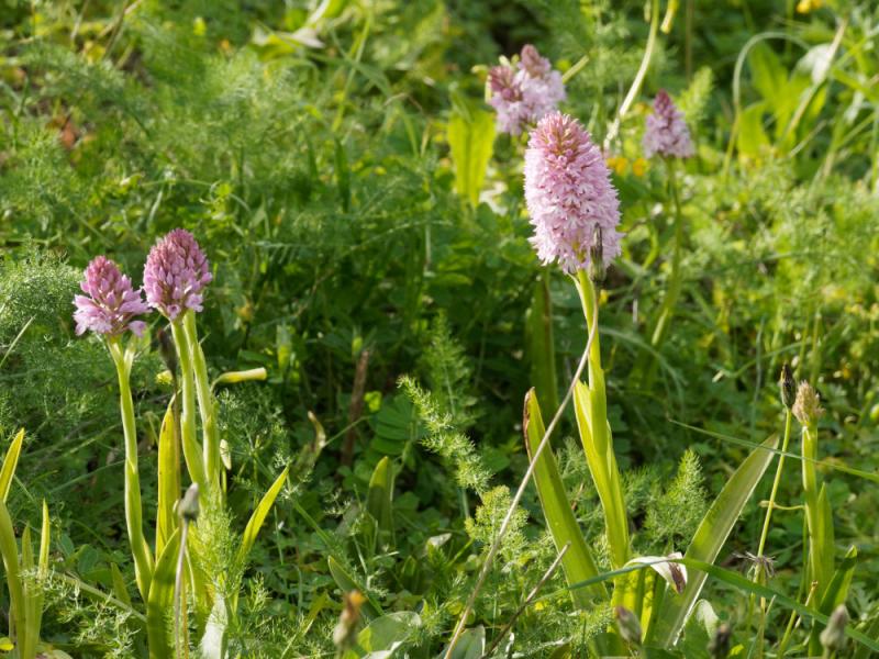 ... und Anacamptis pyramidalis - Pyramiden-Spitzorchis, Hundswurz ...