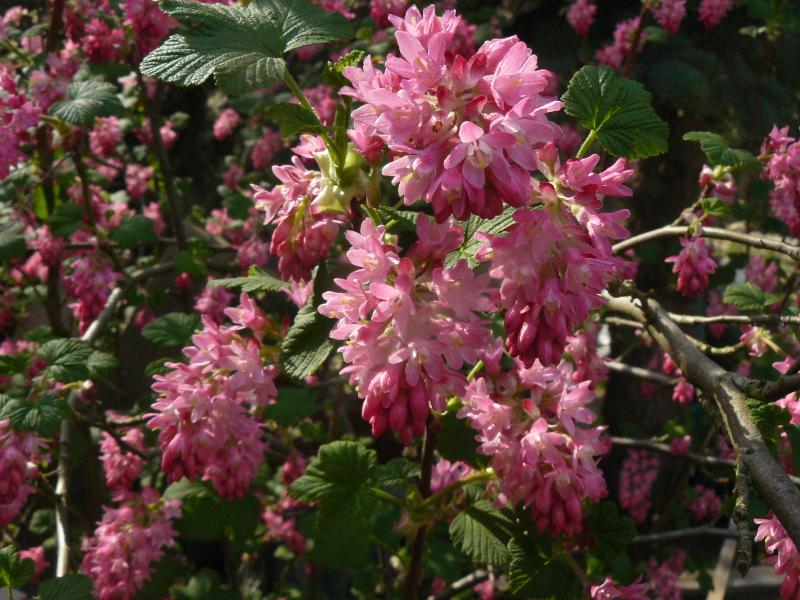 Die Blutjohannisbere Ribes sanguineum Atrorubens blüht im Moment