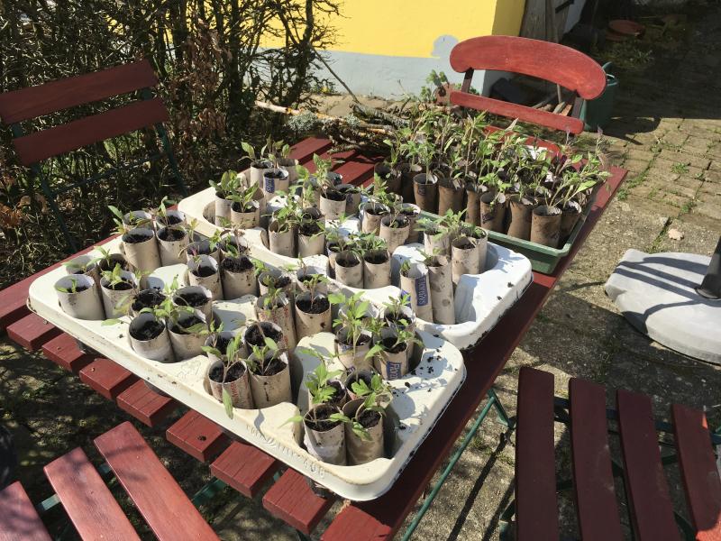 Plan ist von jeder Sorte eine Pflanze zu behalten, der Rest geht an den Stand der NaJu (Naturschutzjugend des LBV) beim diesjährigen Frühjahsfloh- & Tauschmarkt für Pflanzen in der Kleingartenanlage.