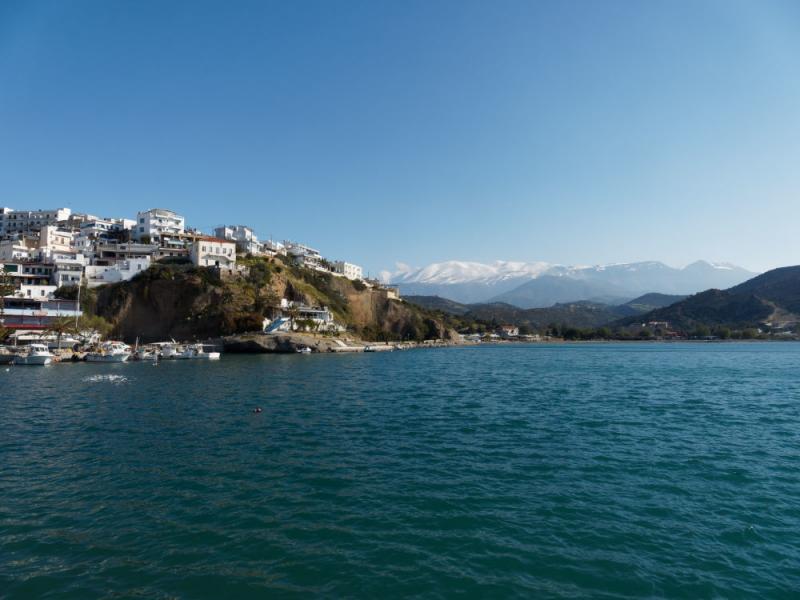 Nach dem Frühstück machten wir einen Spaziergang am Hafen und genossen den schönen Blick auf Agia Galini und das Ida-Massiv.