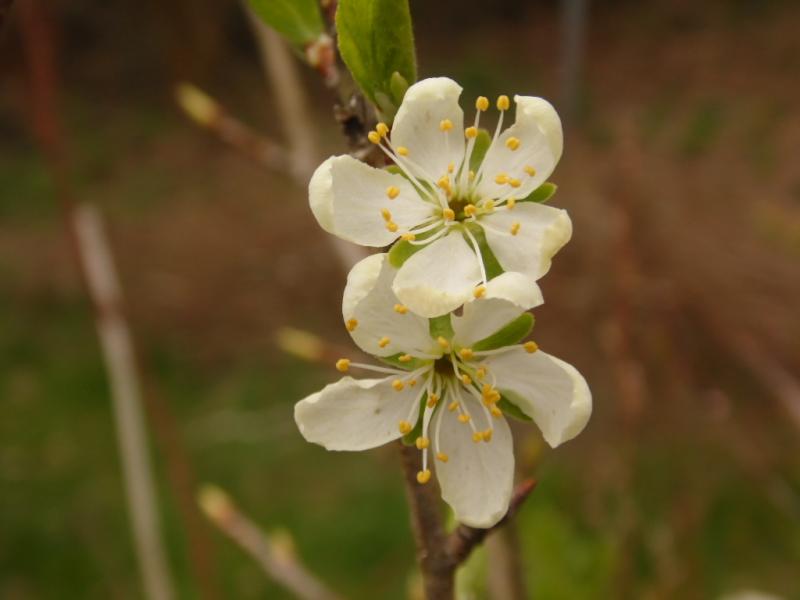 Ich habe heute Morgen meine Kamera nach dem Spillingsblütenduft ausgerichtet und nach dem Sssssummen meiner Mauerbienen. Da vorn steht mein Größter, Dornröschen, gepflanzt 2009, links dahinter der 5-Spillings-Baum.