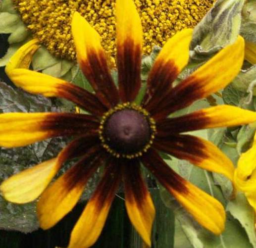 Ist deine Rudbeckia dabei ?Vielleicht die 'Moreno' ?http://gartenphoto.de/gelb/rudbeckia.html