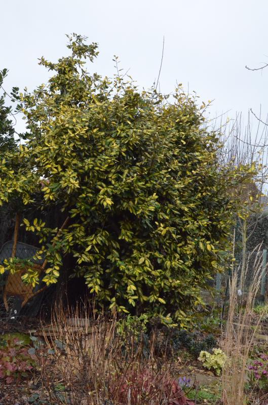 Die Ölweide hat die Funktion, das Metallgerätehaus der Nachbarn zu verdecken.