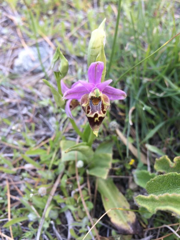 ... hier Ophrys heldreichii – Heldreichs Ragwurz mehr von vorne; das Gelände war tückisch steil, deshalb habe ich sie nicht besser aufs Bild bekommen.
