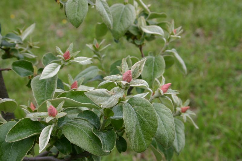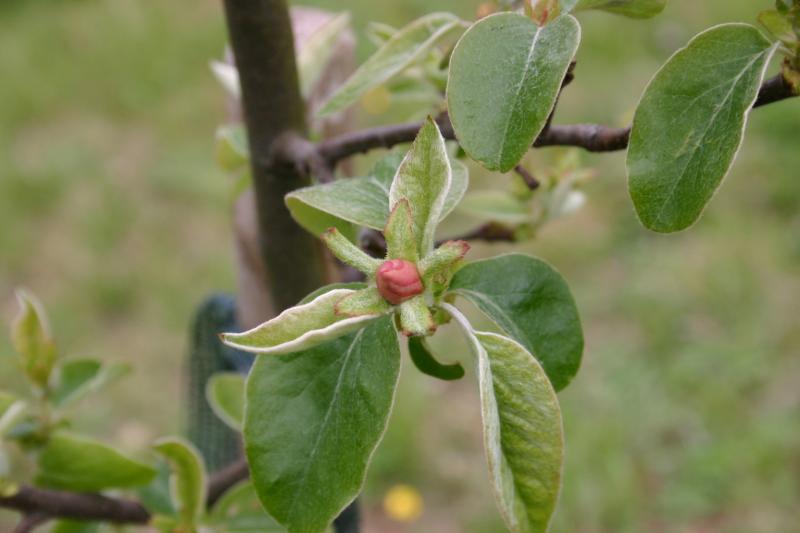 Dank günstigem Kleinklima stehen die ersten Quitten kurz vor der Blüte. Hier im Bild Meech´s Prolific.