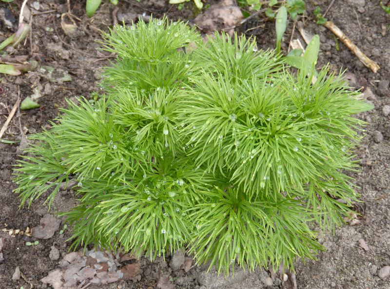 Paeonia tenuifolia 'Rosea' glaubte ich nach dem 2018er Märzwinter verloren, aber sie hat sich gefangen - wenn auch dieses Jahr ohne Blüte.