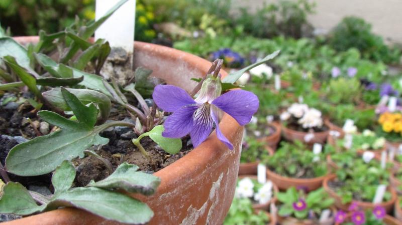 Und noch die erste und einzige Blüte die Viola palmata hier bisher geschafft hat, vielleicht ist es ihr zu trocken in ihrem Töpfchen. Ist aber auch nichts, was mich vom Hocker reißt.
