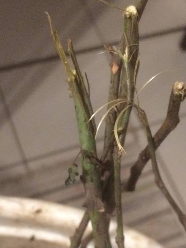 Die Blaettchen sind voellig trocken und dieser faserige Bereich, wo ein Stueck abgerissen wurde auch.