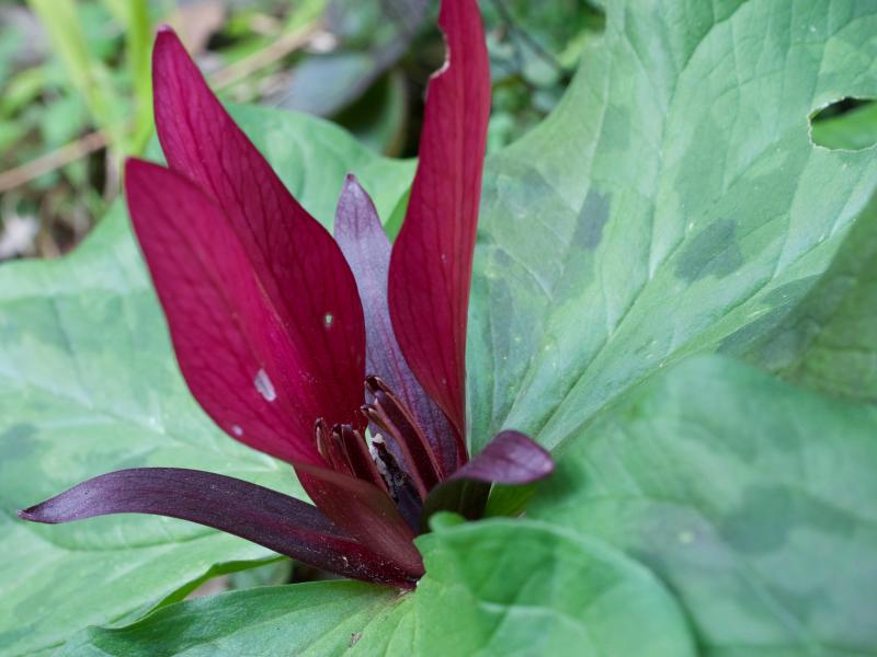 nur ist mir etwas unklar, ob es womöglich eins der überwiegend verschollenen 15 trillium luteum von de warande sein könnte (wobei es dann braunblütige und hochwachsende t. luteum geben müsste) oder ob es nicht vielleicht doch viel eher das mal vor jahren bei edrom bestellte eine trillium angustipetalum ist... 8) ;)