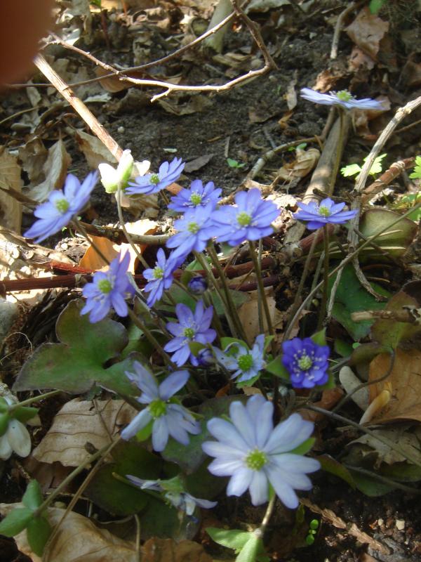 Ja, leider. Eine letzte 'Waldgeist'-Blüte (Hepatica transsilvanica) vor Sanguinaria canadensis...
