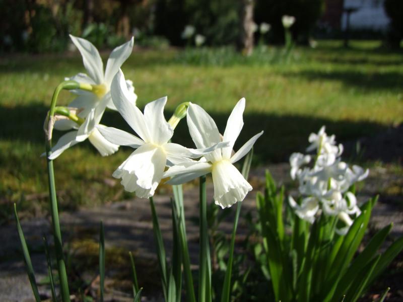 Im Augenblick blühen Engelstränennarzissen,noch Hyazinthen,weißes Immergrün,Anemonen und viele Tulpen.