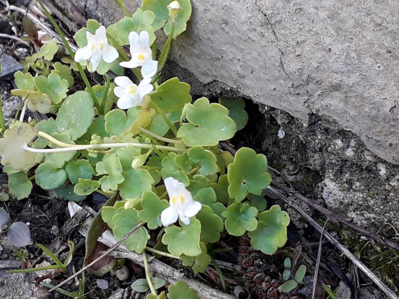 Und einen weißen Cymbalaria-Sämling, letztes Jahr war ich irgendwann mal der Meinung welche wo mit bestellen zu müssen. Dieses hat sich da selbst hingesät, die gefühlt drei Millionen Brüder und Schwestern haben sich glücklicherweise wieder verdünnisiert.