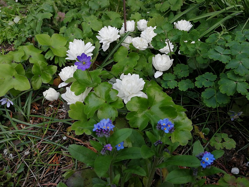 Ja, leider. Eine letzte 'Waldgeist'-Blüte (Hepatica transsilvanica) vor Sanguinaria canadensis...