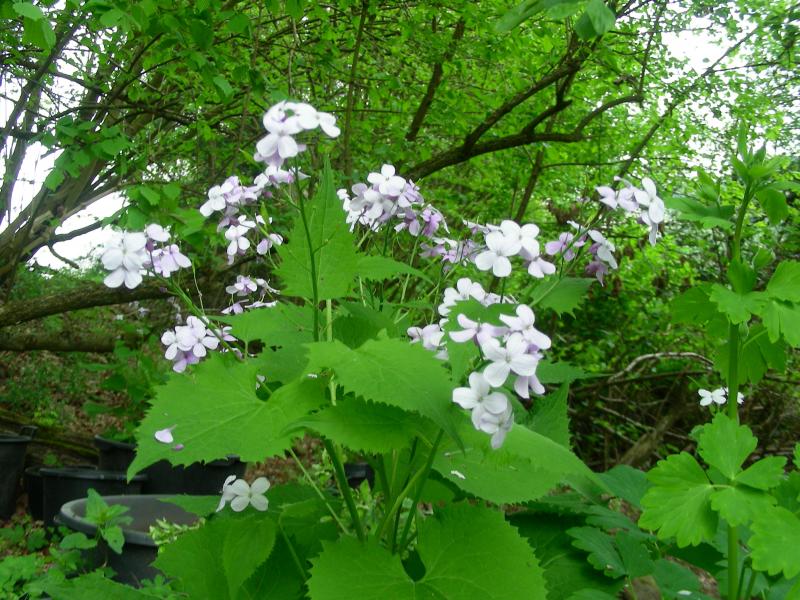Hmm, ob die auch hier gedeihen würde? Die Ecke unten am Gartenhaus ist ja eher feucht, nur mit dem Schatten hapert es da ein bisschen (bzw. da, wo Schatten ist, säuft meine große Tanne und die ebensogroße Fichte das Wasser weg)... Hinterm Zaun am Bach hat sich offenbar Lunaria annua ausgesät, ich erspäte die Tage eine intensiv violette Blüte. :)