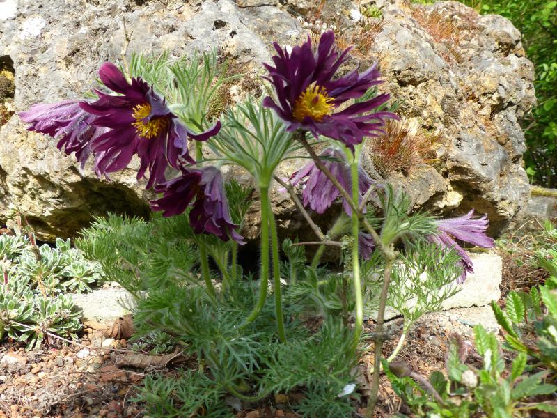 Hast Du dort auch Pulsatillen gesetzt? Wir hatten die Sorte P. turkzaninowii, mit etwas gefransten Blütenblättern. Bringt Farbe ins Beet.