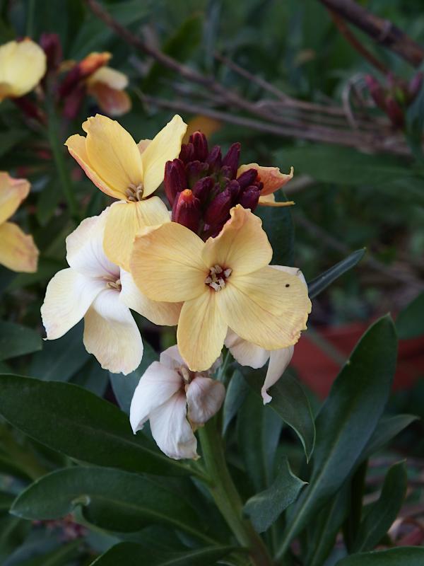 Und der Goldlack ist auch schon soweit. Ein Exemplar mit Farbwechsel je nach Alter der Blüte.