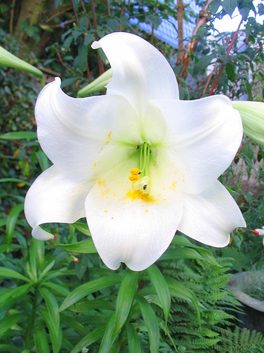 Soll Lilium longiflorum sein und wird deshalb im Gewächshaus überwintert. Der Duft ist überwältigend, fast schon penetrant. Ins Haus würde ich sie mir jedenfalls nicht holen.