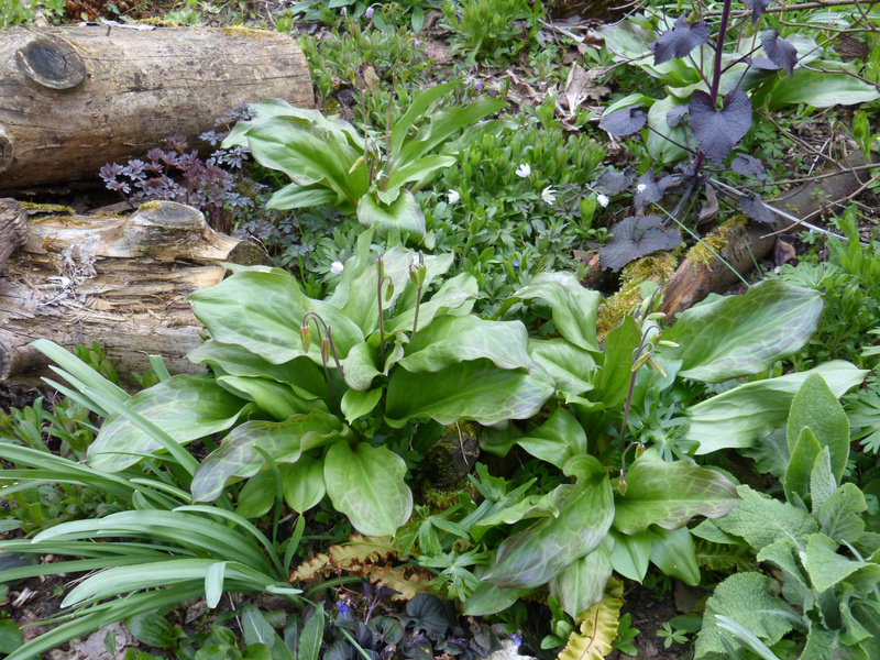 von dem weiß ich den namen nicht mehr. aus meiner sicht falsch gepflanzt, weil er in dem pflanzenwust fast untergeht, aber sie fühlen sich offenbar genau dort sehr wohl, weil sie zuverlässig jedes jahr auftauchen. boden sandig-humos, im frühjahr hell, aber nicht sonnig. ich vermute es könnte Erythronium oreganum sein, zumindest hatte ich die mal samenvermehrt.