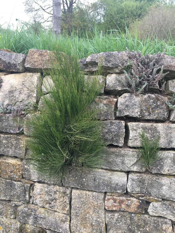 Ephedra „major“, 2016 in die Trockenmauer ausgepflanzt: