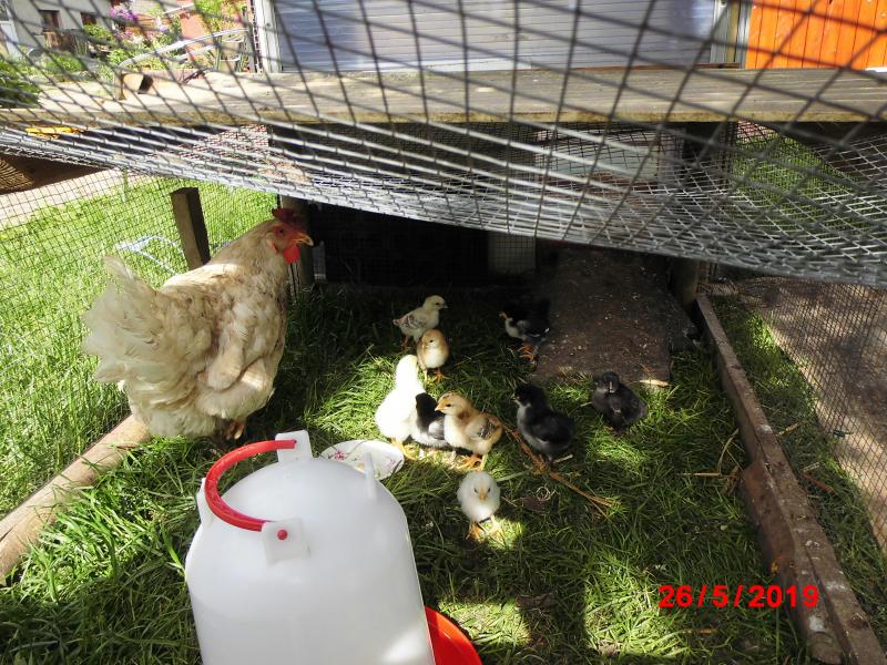 Im Brüter bei mir waren 48 Eier.... :-\ es sind jetzt aktuell 11 Küken die rennen - eins davon ist noch etwas schwach. Die Glucke kümmert sich super. So schlechte Brutergebnisse wie dieses Jahr waren noch nie!