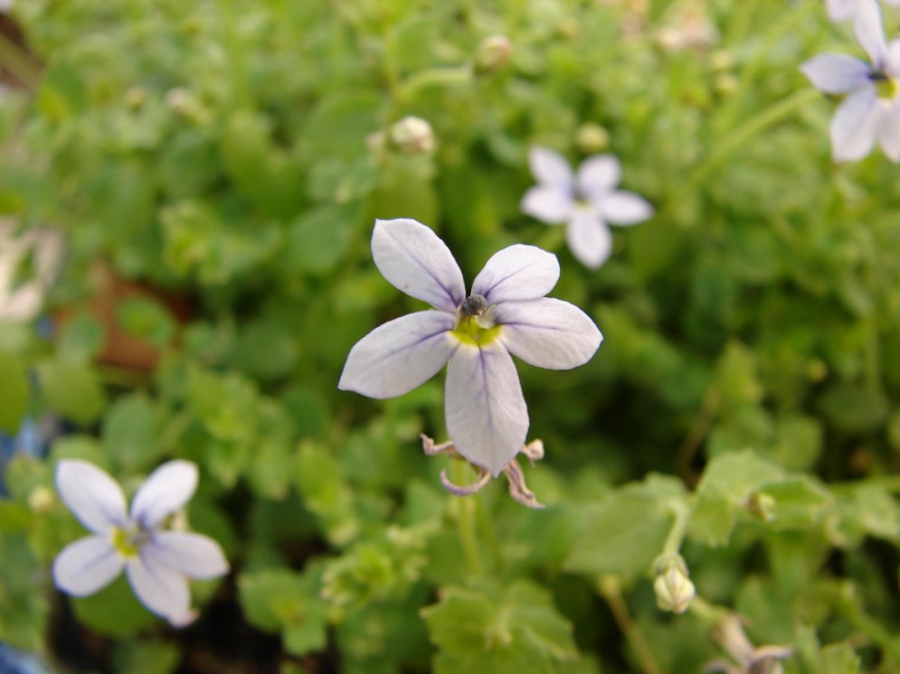 Pratia pedunculata kenne ich schon seit vielen Jahren .Ja, bei mir gibt es ein Gartencenter, das viele rare Pflanzen anbietet in guter Qualität und auch Ausgefallenes.Pratia habe ich in einem großen Kübel, der im Winter in der Garage steht. Sie wächst in guter Kübelpflanzenerde und zieht im Winter ein.Theoretisch könnte man versuchen, Oleanderkübel damit zu bepflanzen, man sollte sie ab und zu im Winter leicht gießen.Da sie einen kriechenden Wuchs hat, sind die unterirdischen Triebe bald im ganzen Topf bis in 2 - 3 cm Tiefe verbreitet. Sobald man wieder ausräumen kann, gieße ich mehr und die Blättchen treiben bald durch und die Pflanze ist bald mit vielen kleinen blauen Blüten übersät.