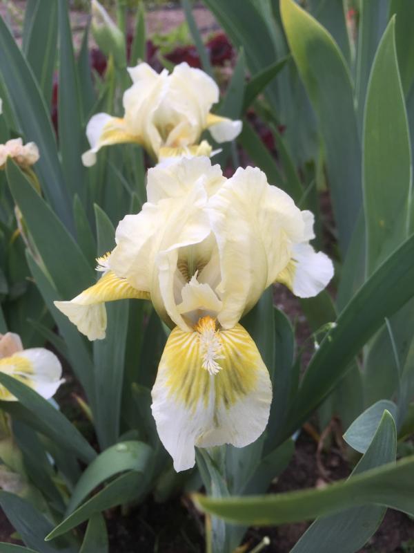 Da ich nur Iris mit Iris kombiniere stört mich eine Fehlfarbe in der Pflanzung nicht. Im Frühling darf es bunt sein. Meine Primel wachsen auch alle bunt durcheinander ;D