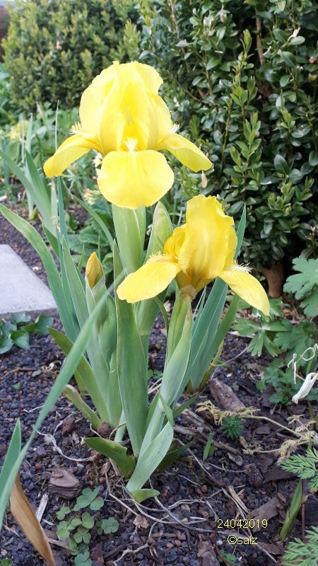 Da ich nur Iris mit Iris kombiniere stört mich eine Fehlfarbe in der Pflanzung nicht. Im Frühling darf es bunt sein. Meine Primel wachsen auch alle bunt durcheinander ;D