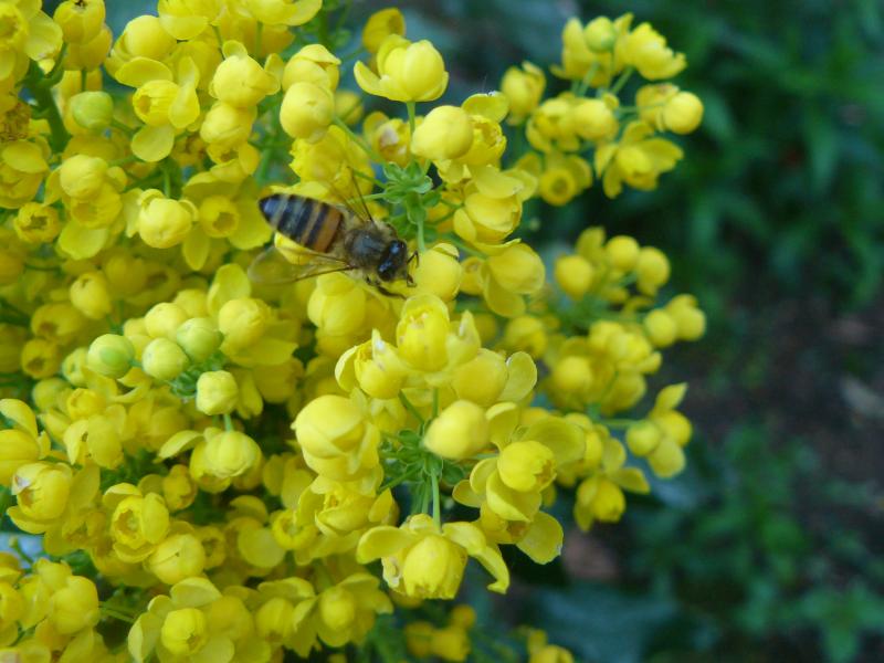 Da hat wohl ein Nachbar ein Bienenstock im Garten . :)