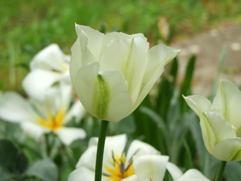 Ich weiß genau,dass ich niemals eine Tüte mit lachsrosa hier gepflanzt hätte.Also wieder ein Überraschungsei.Die rosa Tulpen buddel ich natürlich wieder aus.