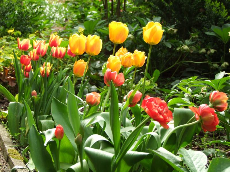 Ich weiß genau,dass ich niemals eine Tüte mit lachsrosa hier gepflanzt hätte.Also wieder ein Überraschungsei.Die rosa Tulpen buddel ich natürlich wieder aus.
