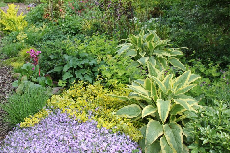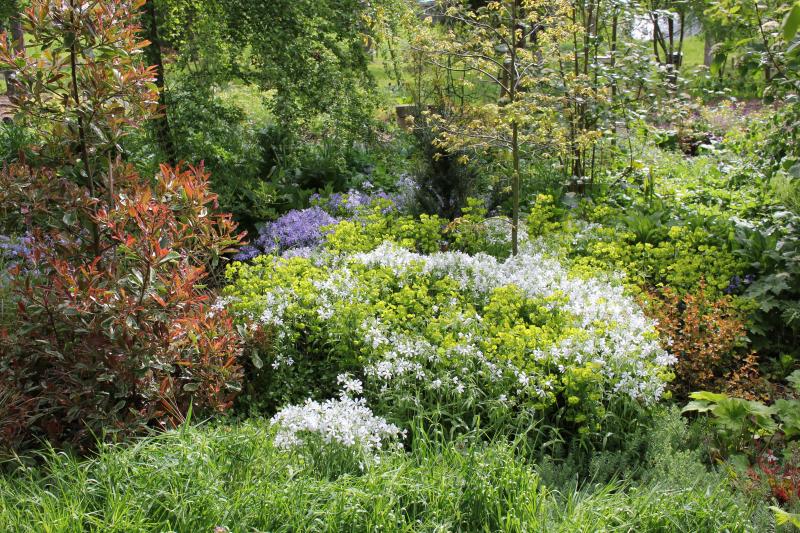nochmals Euphorbien, diesmal mit Waldphlox. So dicht hätte ich die Pflanzung gerne überall!
