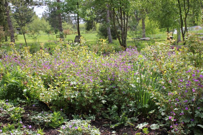 Im Winterbeet hat sich Geranium Bill Wallis kräftig vermehrt, hat zwar sehr kleine Blüten, dafür aber massenhaft: