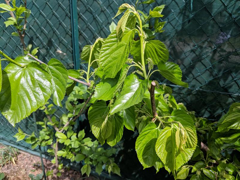 Wellington habe ich auch. Es handelt sich nicht um eine Morus Nigra, sondern wahrscheinlich um eine Hybride (alba x rubra). Die Knospen sehen nicht nach einer reinen Alba aus, weshalb es eine Hybride sein dürfte. Eine Nigra ist es definitiv nicht.