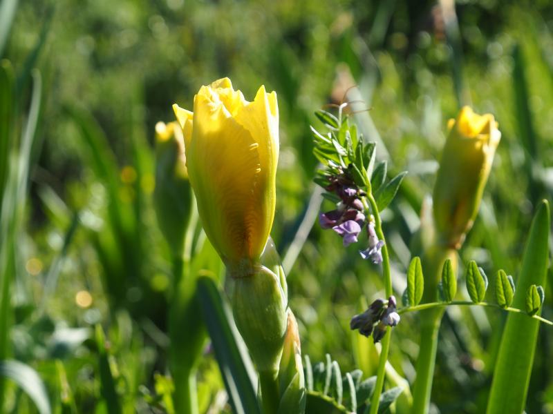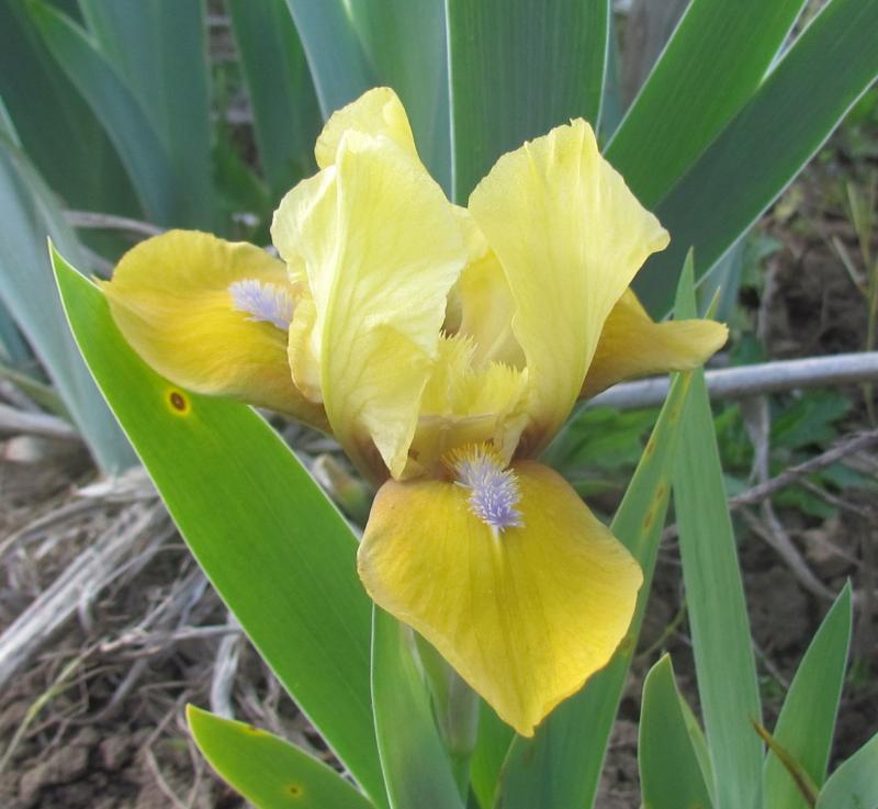 Allmählich übernehmen die Intermedias, diese ist eine ohne Namen, welche ich schon sehr lange, fast von Anfang an habe. Ziemlich sicher eine der deutlich älteren Sorten. Die letzten drei Jahre meinte es das Wetter nicht gut mit ihr, jetzt kann sie sich aber mal in Hochform zeigen, einfach eine hübsche hellgelbe Iris. (Wobei es ja temperaturmäßig nochmal ernst werden könnte :P).