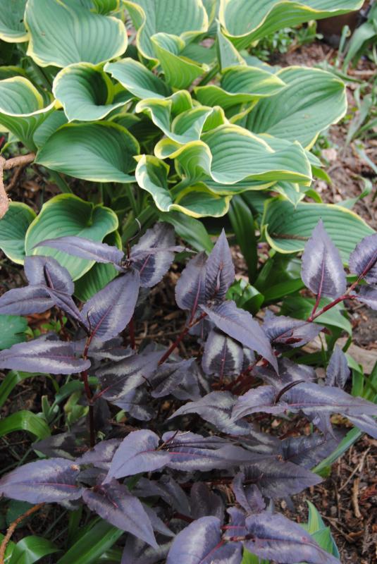 Dieses violettgemusterte Laub neben der Hosta habe ich neulich schon einmal auf einem deiner Bilder bewundert! :)