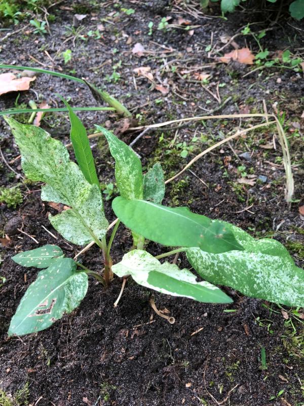 Bei persicaria amplexicaulis spotted eastfield sind auch immer Blätter dabei die noch anders aussehen.