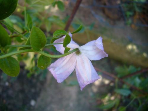 Endlich! Die erste Blüte meiner frisch gepflanzen Clematis viticella 'Hanna'!