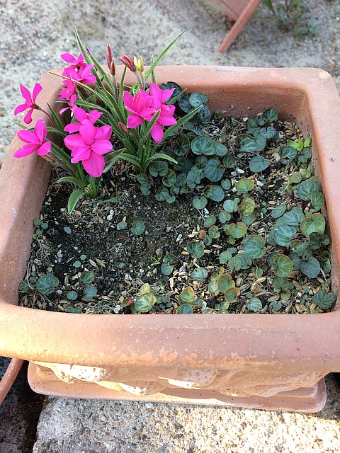 ... und auch die Rhodohypoxis hat es ausgewählt - Bild von 2018 - um dann die ganze Fläche zu bedecken.