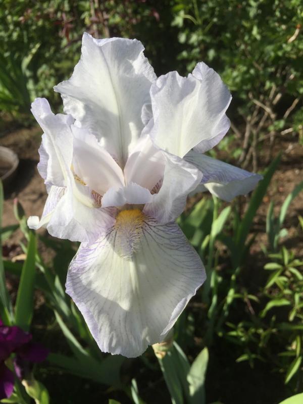 hm, es liegt wohl am roten Mulch, was ist das denn? Jedenfalls wirkt die Blüte dadurch mehr blau und der Rotanteil tritt in den Hintergrund.