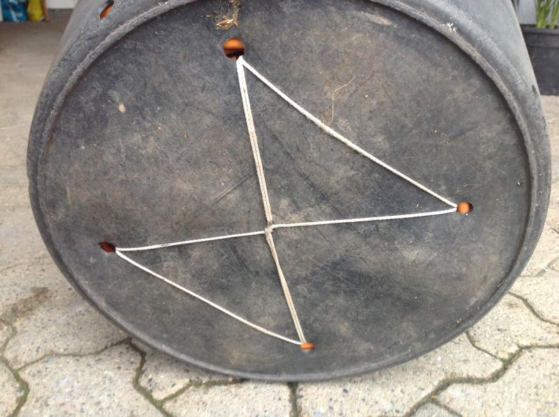 Ist das ein Stück Rohr in der Mitte und Du hast Löcher in den Eimerboden gebohrt und das dadurch festgebunden?