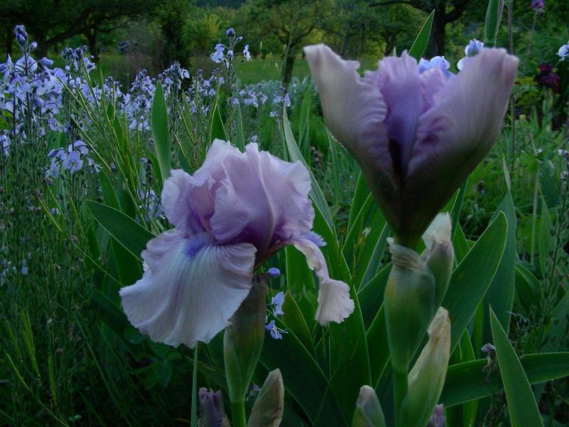 Morgendämmerung ist bei mir die dritte nach der niedrigen dunkelblauen die ich einfach 'Beaune' nenne weil sie aus Südfrankreich stammt, und der wunderbar duftenden Iris albicans die ich mal vom Häckselplatz mitgenommen habe. Alle anderen stehen da und verheben sich die Blüte weil es ihnen wohl noch zu kalt ist.
