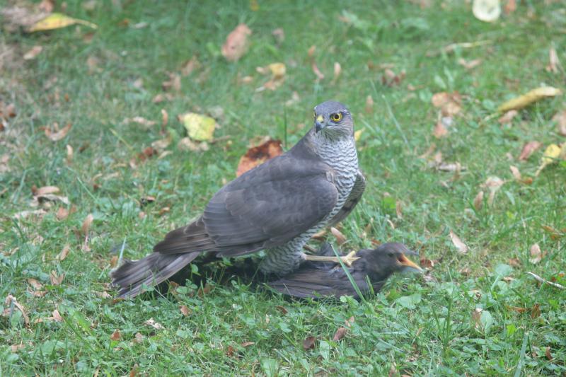 Da fällt mir gerade ein, letzten Herbst hab ich zufällig einen Räuber im Garten erwischt, der sich eine Amsel gekrallt hat. Kann den jemand identifizieren?