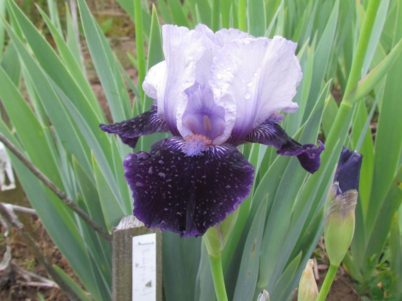 'Leapin' Lizards' 1985 Kenneth Waite ist offenbar sehr variabel AIS Iris Encyclopedia: "S. Greyed-white. F. brown with hint of green (RHS 199C). Greyed-white area around lavender beard. Tailored form"