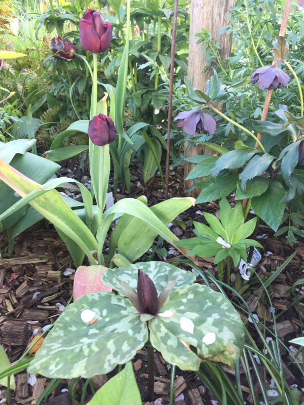 Spätsommer/Herbst die Kombination mit Farnen und Hosts ist sinnvoll, das Laub wird dann verdeckt wenn es unansehnlich wird. Gilenia trifoliata scheint auch gut mit Trillium grandiflorum zu funktionieren aber das ist erst in der Erprobungsphasen... ;)