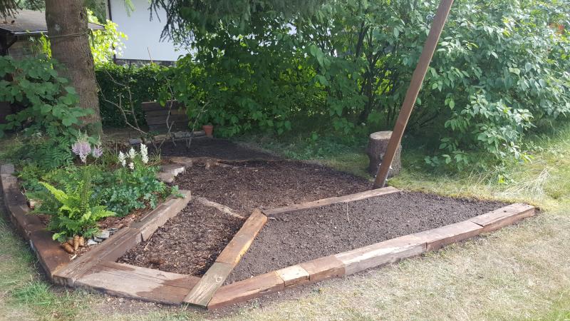 - restliche Beetbegrenzung gesetzt, Erde aufbereitet