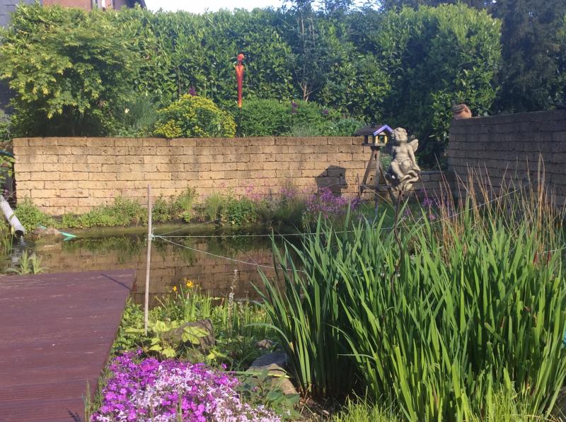 Heute an unserem Teich, im Vordergrund blüht der Teppichphlox.