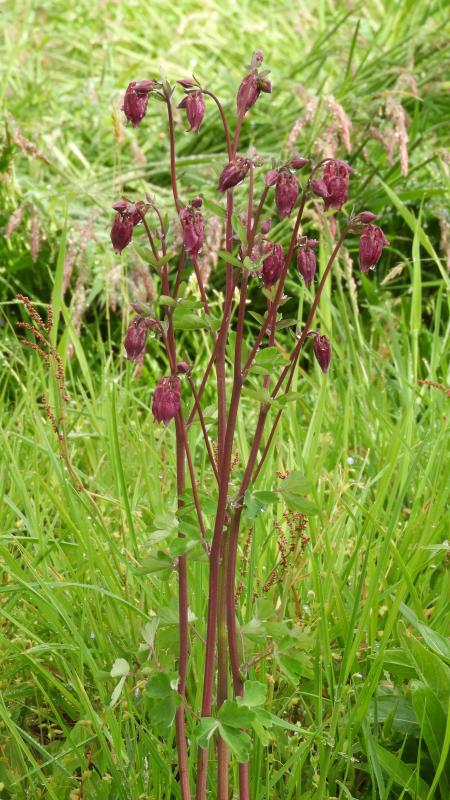 Am Rand der Auffahrt auf Nachbars Grund stehen Akeleien, leider immer weniger, weil er es zuwachsen lässt. In den 13 Jahren die wir jetzt hier sind hat es noch keine geschafft, in die gegenüberliegende Wiese abzusamen.
