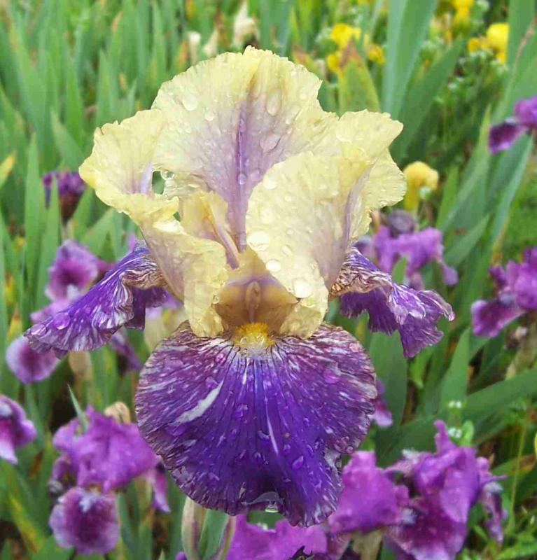 Ich nehme an Iris pallida var. illyrica? Jedenfalls sehr zierlich und hübsch. Ich schätze mal gut 40cm hoch, Blätter niedrig.