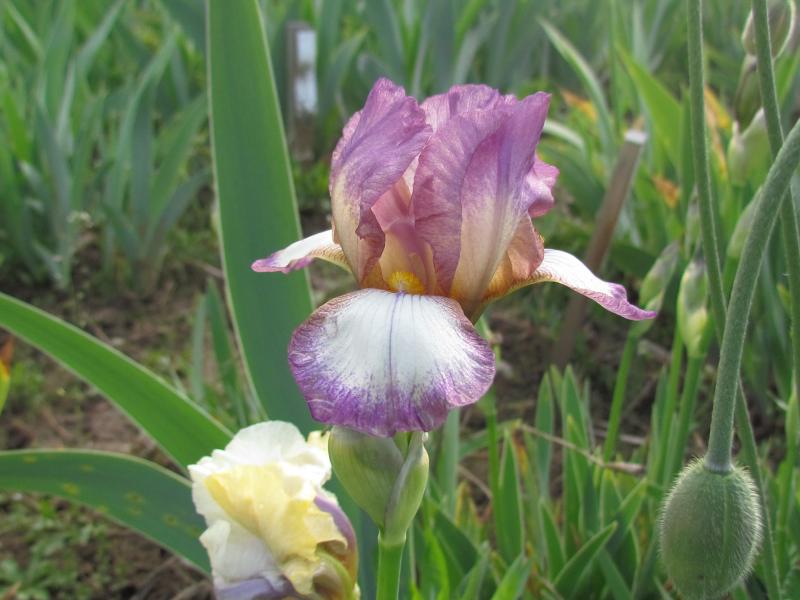 MTB `Rosemary´s Dream´ (Mary Louise Dunderman 1981), hatte ich vor Jahren mit der völlig falschen Erwartung einer großen Sorte bekommen, da als "Iris Barbata-Elatior" bezeichnet. Weswegen ich sie immer ein wenig naserümpfend angeschaut habe, da sie aber hier auch schon viel mitgemacht hat, darf sie bleiben. Allmählich meine ich sogar, dass sie mir zu gefallen anfängt. Der Mohn ist orangener Papaver atlanticum, der neben dem ganzen Unkraut durch die Iris geistert, das darf er!